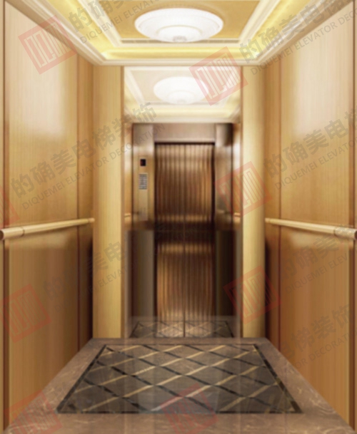 侧壁:木饰面内嵌玫瑰金不锈钢条。