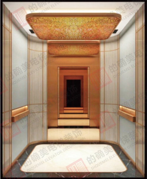 侧壁:中心板皮革硬包,古铜色发纹收边。辅助板木质饰面嵌古铜色发纹线条。