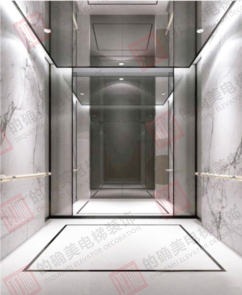 侧壁:中心板大理石纹饰面;辅助板黑钛喷砂不锈钢。