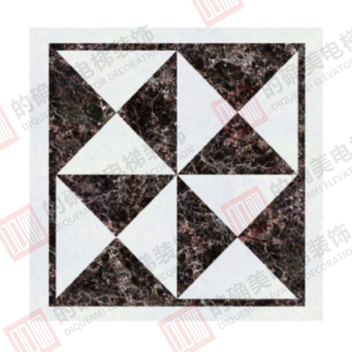 轿底装潢为2.0mm厚PVC大理石纹拼花工艺地板,具有重量轻、安装方便等特点,色彩美观、大方,可与大理石媲美。
