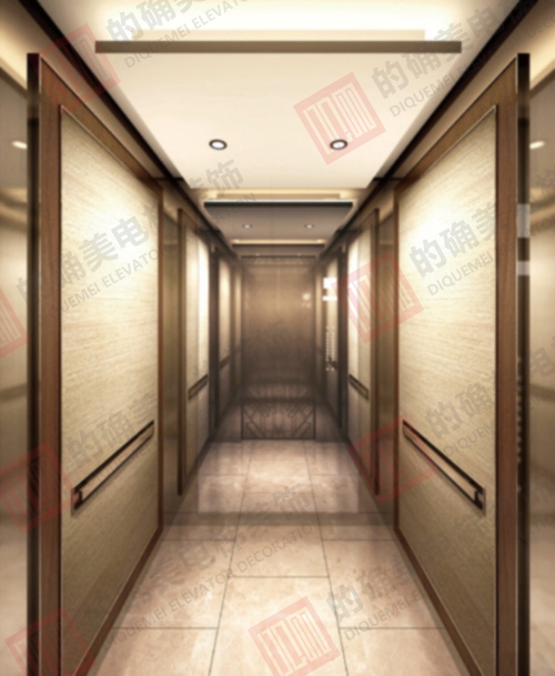 侧壁:中心板木质饰面;辅助板古铜色喷砂不锈钢。