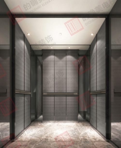 侧壁中心板:黑钛压花不锈钢板加黑钛镜面不锈钢嵌条;辅助板:黑钛镜面不锈钢。