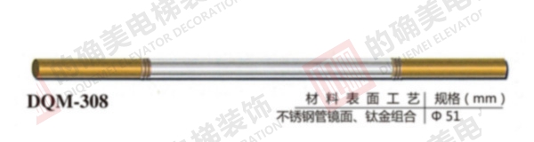 特别说明 本公司根据不同轿厢装潢之特点,设计了不锈钢圆管、椭圆管、方管、钛金管、木质、不锈钢发纹板、有机柱等不同材质、不同式样的扶手十余款,造型优美、尺寸齐全,用户在购买轿厢装潢时可根据个人喜好自由选配。 产品通过拍摄和电脑制作图片,因环境色彩等各种因素的影响与实物会有差异,以实物为准。同时,我们将保留更换产品局部设计和说明的权利,恕不另行通知,如有特殊要求请在签订合同时明确说明。