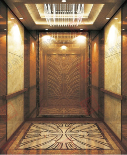 侧壁中心板:米黄大理石内衬蜂窝板加玫瑰金不锈钢包边;辅助板:玫瑰金镜面不锈钢。