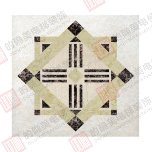 轿底装潢为2.0mm厚PVC大理石纹拼花工艺地板,具有重量轻、安装方便等特点,色彩美观、大方,可与大理石媲美。