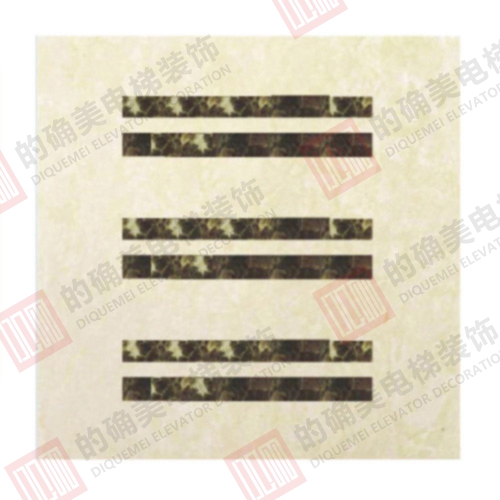 轿底装潢为2.0mm厚PVC大理石纹拼花工艺地板,具有重量轻、安装方便等特点,色彩美观、大方,可与大理石媲美。