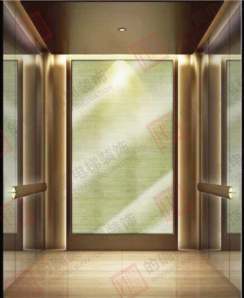 后壁:中心板艺术玻璃加古铜色喷砂不锈钢边框暗藏灯带;辅助板古铜色喷砂不锈钢。