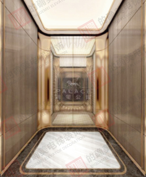 侧壁:中心板皮革硬包加工艺木质边框;辅助板古铜色镜面不锈钢。