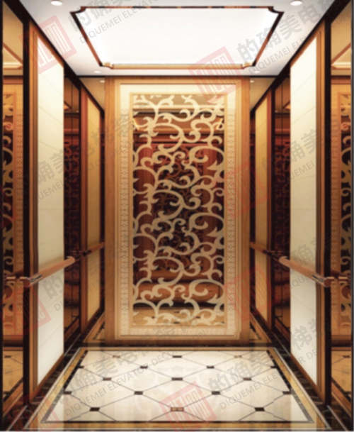 侧壁:中心板皮革硬包加工艺木质边框;辅助板古铜色镜面不锈钢。