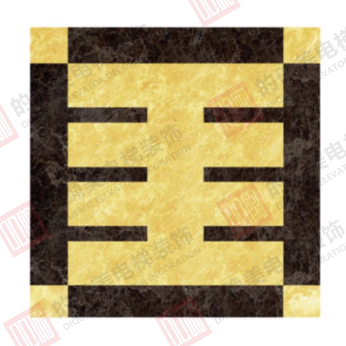 轿底装潢为2.0mm厚PVC大理石纹拼花工艺地板,具有重量轻、安装方便等特点,色彩美观、大方,可与大理石媲美。