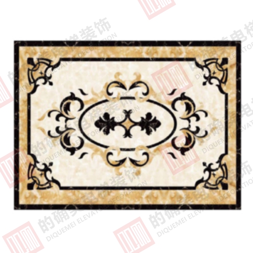 轿底装潢为2.0mm厚PVC大理石纹拼花工艺地板,具有重量轻、安装方便等特点,色彩美观、大方,可与大理石媲美。