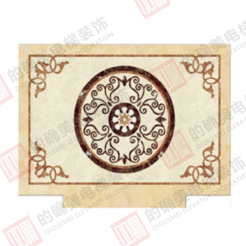轿底装潢为2.0mm厚PVC大理石纹拼花工艺地板,具有重量轻、安装方便等特点,色彩美观、大方,可与大理石媲美。