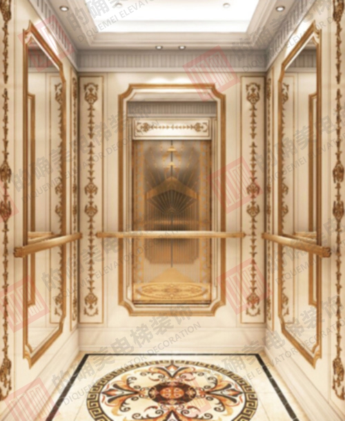中心板:米色护墙板,银镜嵌金色烤漆木线条边框。