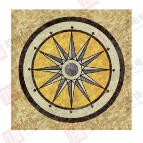轿底装潢为2.0mm厚PVC大理石纹拼花工艺地板,具有重量轻、安装方便等特点,色彩美观、大方,可与大理石媲美。
